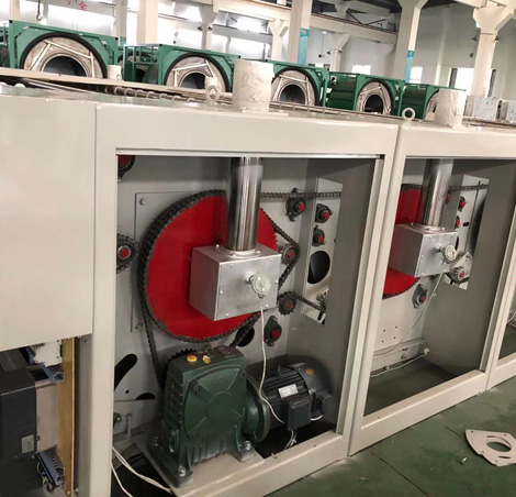 一主輥筒和副輥筒采用差動(dòng)設(shè)計(jì),有效提高織物熨燙的平整度,同時(shí)也解決了目前普通燙平機(jī)的兩頭皺折和小布草熨平質(zhì)量的難題。